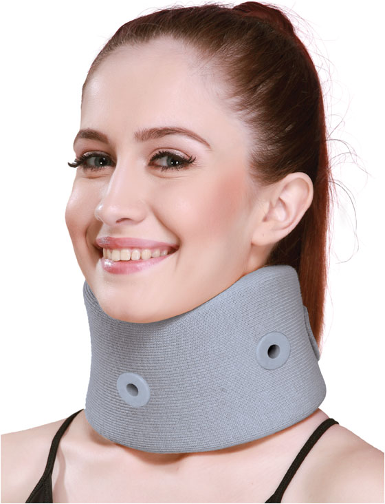 High density P.U foam is covered with stockinet for maximum patient comfort. Low contour design maintains the head in neutral position. Perforated collar body improves ventilation and comfort long hook and loop tape ensure snug fitting and easy application. Rear velcro closure, anatomical design.