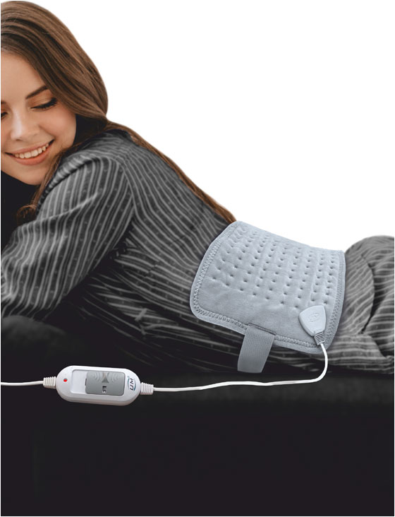 Imported long-lasting heating coil flexible material can be contoured conveniently around the affected area. Long cable improves convenience in built twin thermostate for 100% safety ultra soft nylex cover. Velcro strap on belt. Soft slide illuminated temperature controller with 3 heat levels.