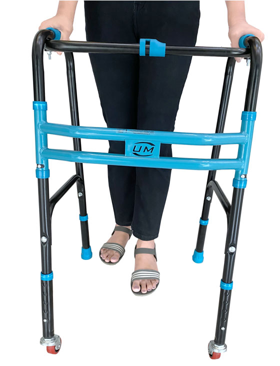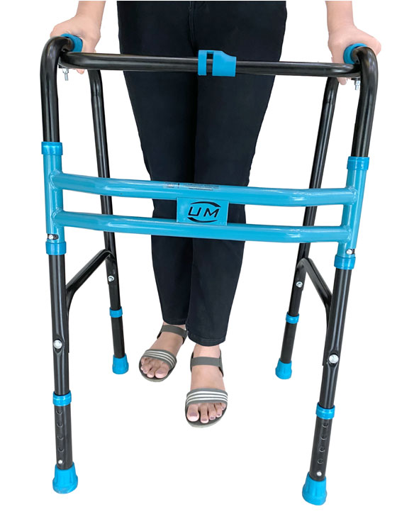 Folding Walker HD (With Wheels) is a useful mobility aid for people with limited mobility and provides great support and balance to the user. Durable and light weight, the anodized mild steel frame eliminates any noise and provides a strong grip on the floor. It comes with a push button which allows it to be folded for compact storage and transport. In addition to this, the wheels facilitate the use to walk on surface with a relax stride.
