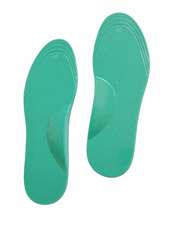 Anatomically designed for a comfortable fit. Insoles made with viscoelastic silicone with metatarsal and calcaneus supports in different density and with retro capital support and bridge. Reduces impact loads on the ankle knee, hip & spine during steps.